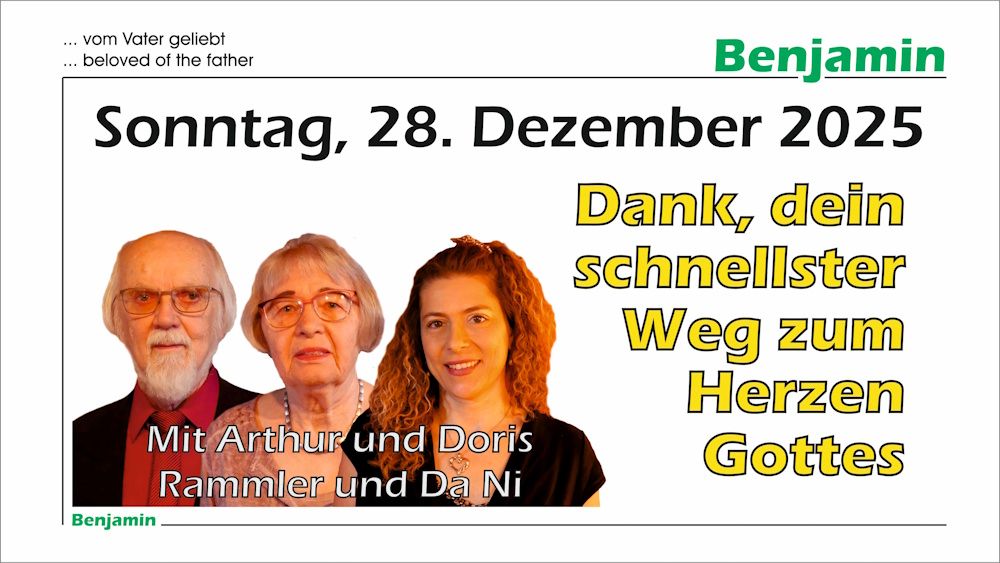 'Benjamin e.V.' ist ein Missionswerk auf Basis des vollen Evangeliums der Bibel. Der Name bedeutet "der vom Vater Geliebte".